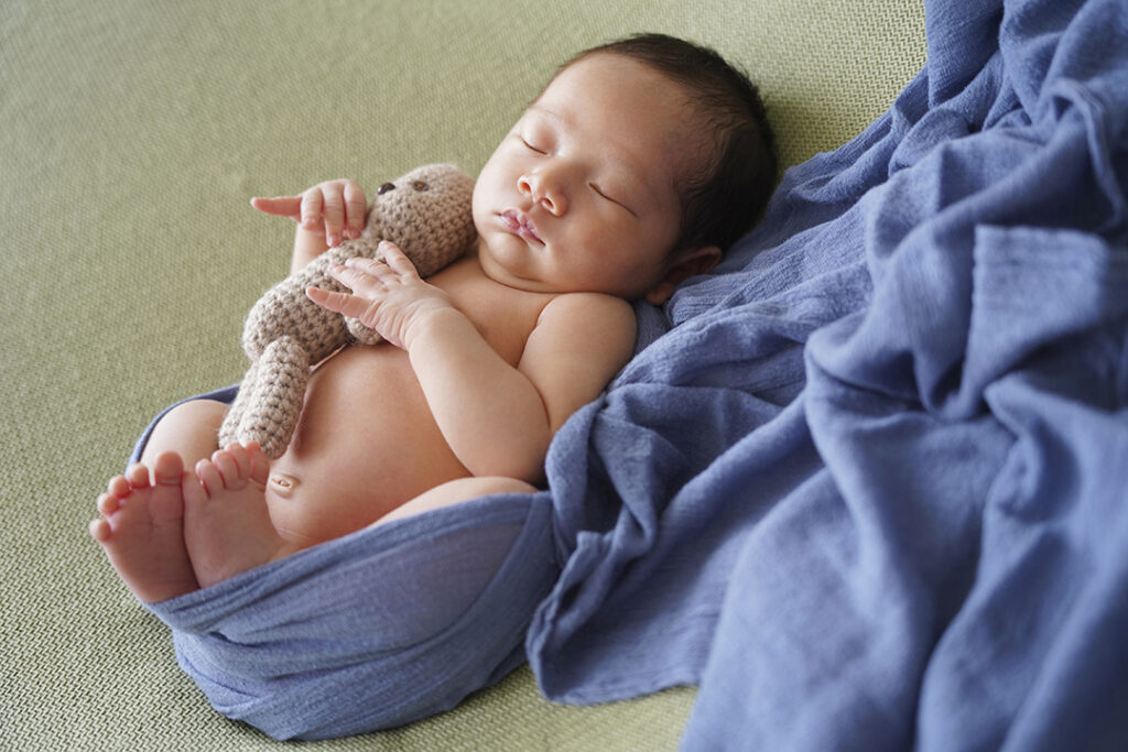 また、まだ温度管理が未熟な赤ちゃんの為、撮影時は温度管理をし、とにかく赤ちゃんが「スヤスヤと寝ていること」を大切にしています。