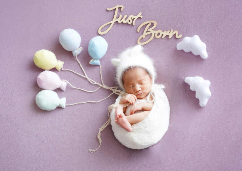 ニューボーン=新生児。欧米では生後2週間くらいの生まれたての赤ちゃんを撮影することをいいます。