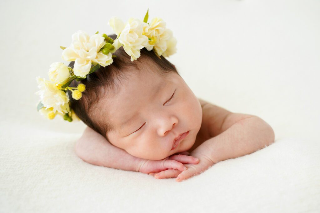 生まれたばかりの赤ちゃんは、本当に小さくて儚げな印象ですが、1ヶ月もするとぷくぷくと丸みを帯びてきて、ぐんぐん大きくなっていきます。そんな神秘的な新生児を写真に残すことで、出産後にはじめて赤ちゃんと対面したときの気持ちを思い出させてくれるのがニューボーンフォトです。ニューボーンフォトは、スヤスヤと眠る赤ちゃんの神秘的な姿を撮影します。